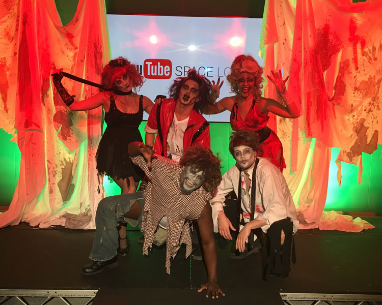 Our eccentric Thriller flash mob is the perfect Halloween entertainment option for a variety of promotional events, PR stunts, as well as private and corporate events where our professional dancers and event dancers captivate the most. Bound to make a massive impact at your social gathering, our skilled flash mob will have your guests talking about their rendition of Thriller for months to come. Our eccentric professional dancers can even hang around and greet your guests and provide photo opportunities that further the interactive Halloween experience.