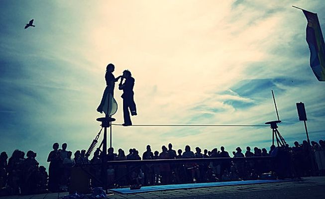 This act tells a story of love and takes place entirely on a tightrope, where balance, dance and theatre are combined to astonish audiences