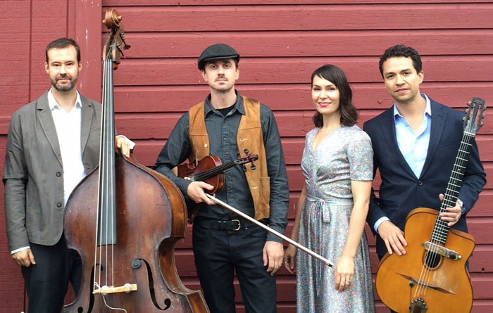 - A quintet with jazz vocalist, violin, 2 acoustic guitars and upright bass