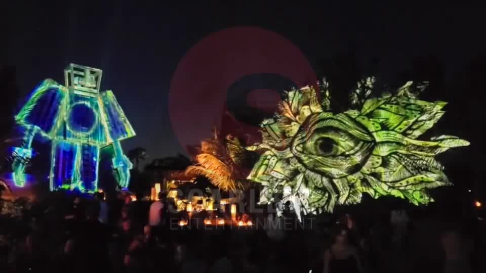 Unique video mapping installations transform ordinary trees into animated canvases for events at night
