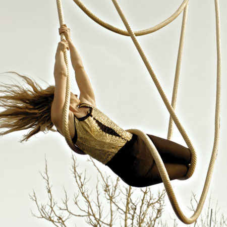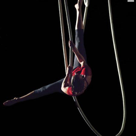 A talented circus artist who has performed with different companies since childhood, our Triple Cloudswing Aerialist has perfected her solo show using a unique piece of apparatus known as the "cloudswing". Using three ropes suspended in a U-shape, the acrobatic artist swings from the ceiling, demonstrating beautiful balances and holds as she moves between the different cables.