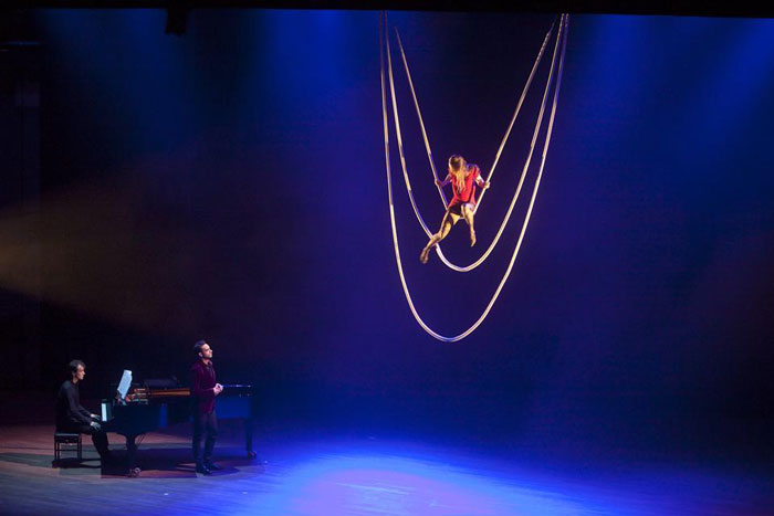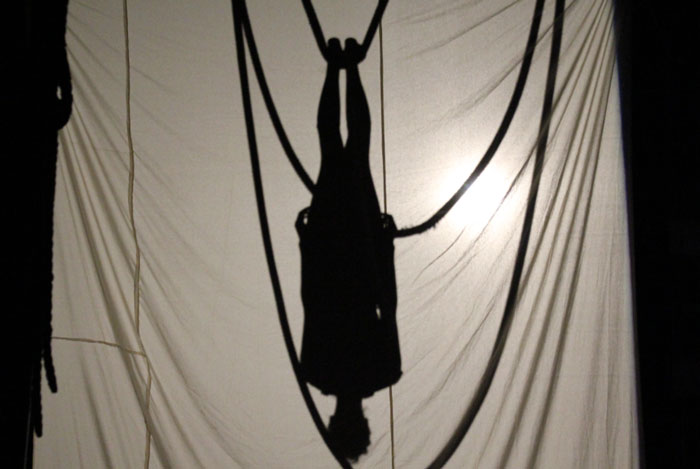 "Shadow" - A playful aerial acrobatic show using silhouettes and a curtain