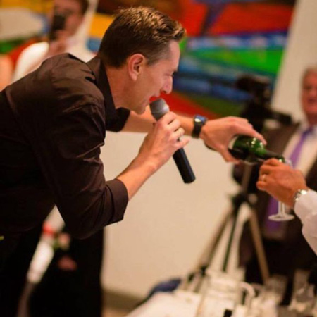 After arriving two hours early with everything they’ll need for the day, the singing waiters set up their sound system and playlist and make sure everything’s working perfectly. Their equipment is all discreetly hidden so that guests won’t suspect a thing and they will don their aprons and turn into unsuspecting drinks servers.