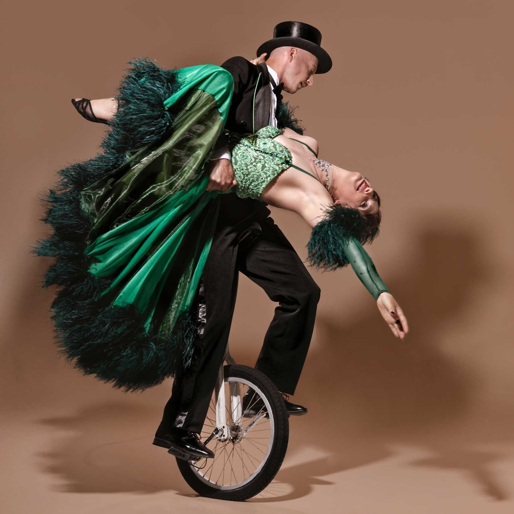 Offering a unique acrobatic show, our unicycle artists are one of only a few acts in the world performing duo acrobatics on a unicycle! Showcasing immense skill, our circus performers will amaze audiences as they perform gravity-defying acrobatic feats whilst seemingly precariously balance on a moving unicycle!