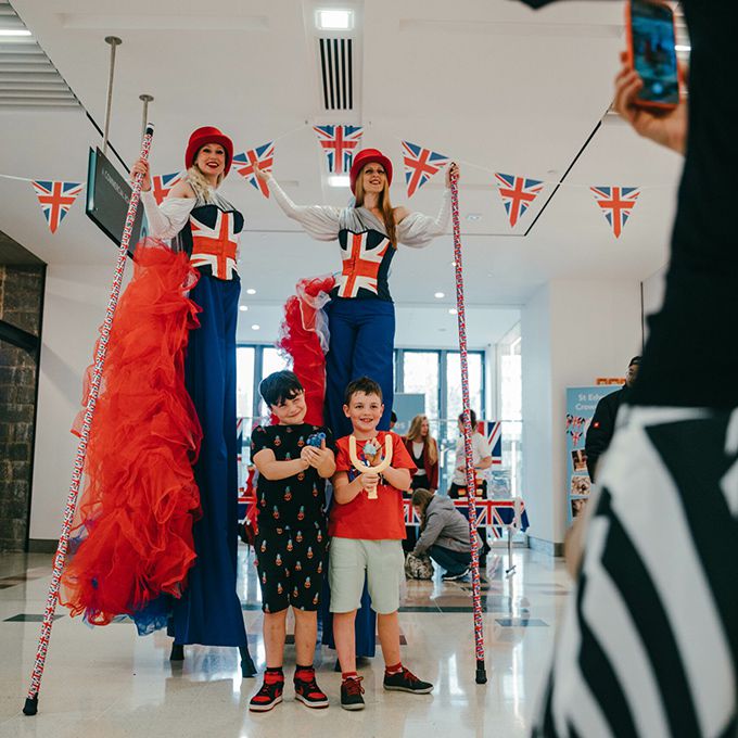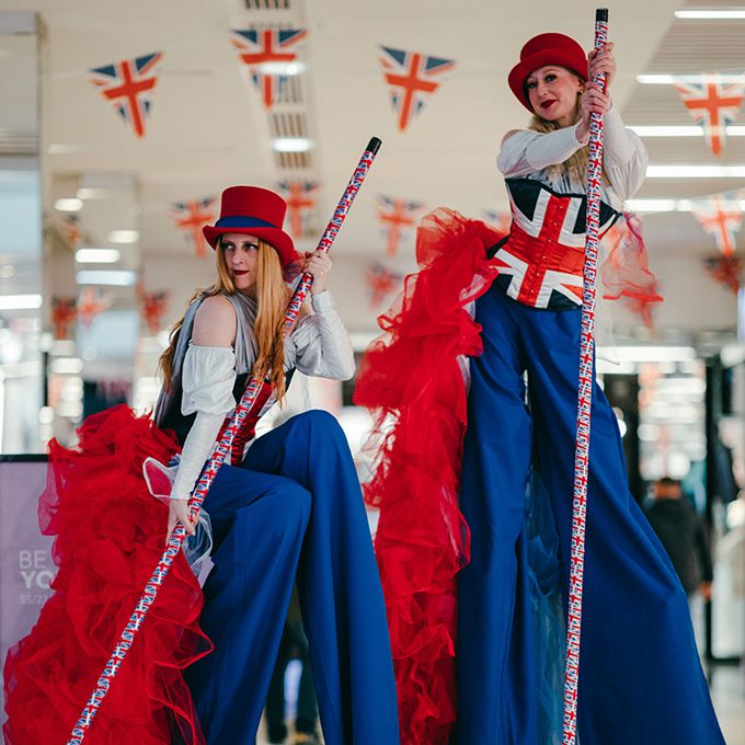 Looking for unique stilt walkers or royal themed entertainment that is sure to make a lasting impression at your upcoming event or gathering? Our professional stilt act is the ultimate interactive entertainment experience and can appear at your event as shiny and elegant Union Jack inspired characters. Our exciting roaming act is unlike anything you've experienced before and will turn heads as they greet guests as they provide a variety of unique photo opportunities that are sure to leave guests with unforgettable memories built around our stilt walkers' unique charm and personality.