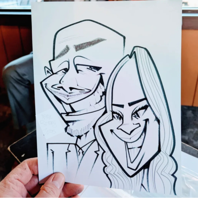 Entertain guests with these live caricatures featuring bold, high-contrast lines and a playful style that creates unforgettable keepsakes