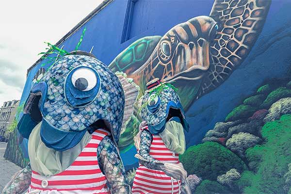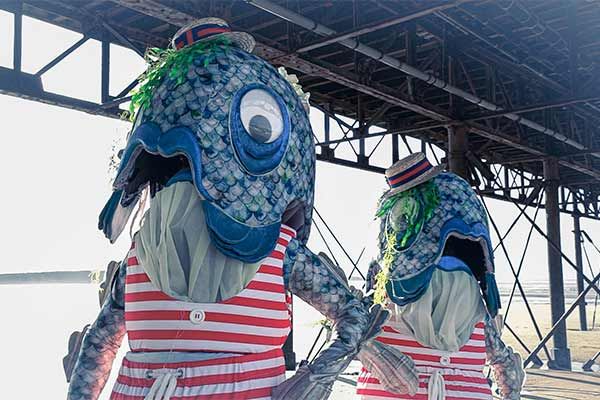 Our roaming fish are based in Bristol and make the perfect character addition to parades, sea-themed events, festivals, carnivals and more
