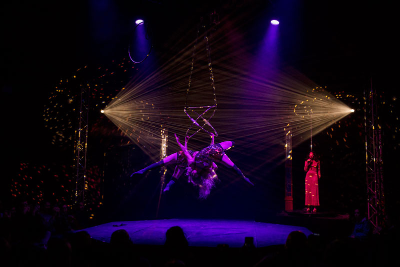 Performed by a variety of artists, this burlesque dance performance bring together on one stage various circus and other artistic disciplines. Aerialists, singers, actors, fire swallowers and burlesque neon dancers have joined forces to offer a burlesque stage show that is a unique mix of comedy, singing, circus acts, human projection mapping and dancing.