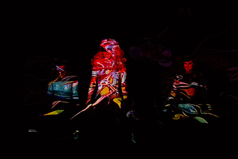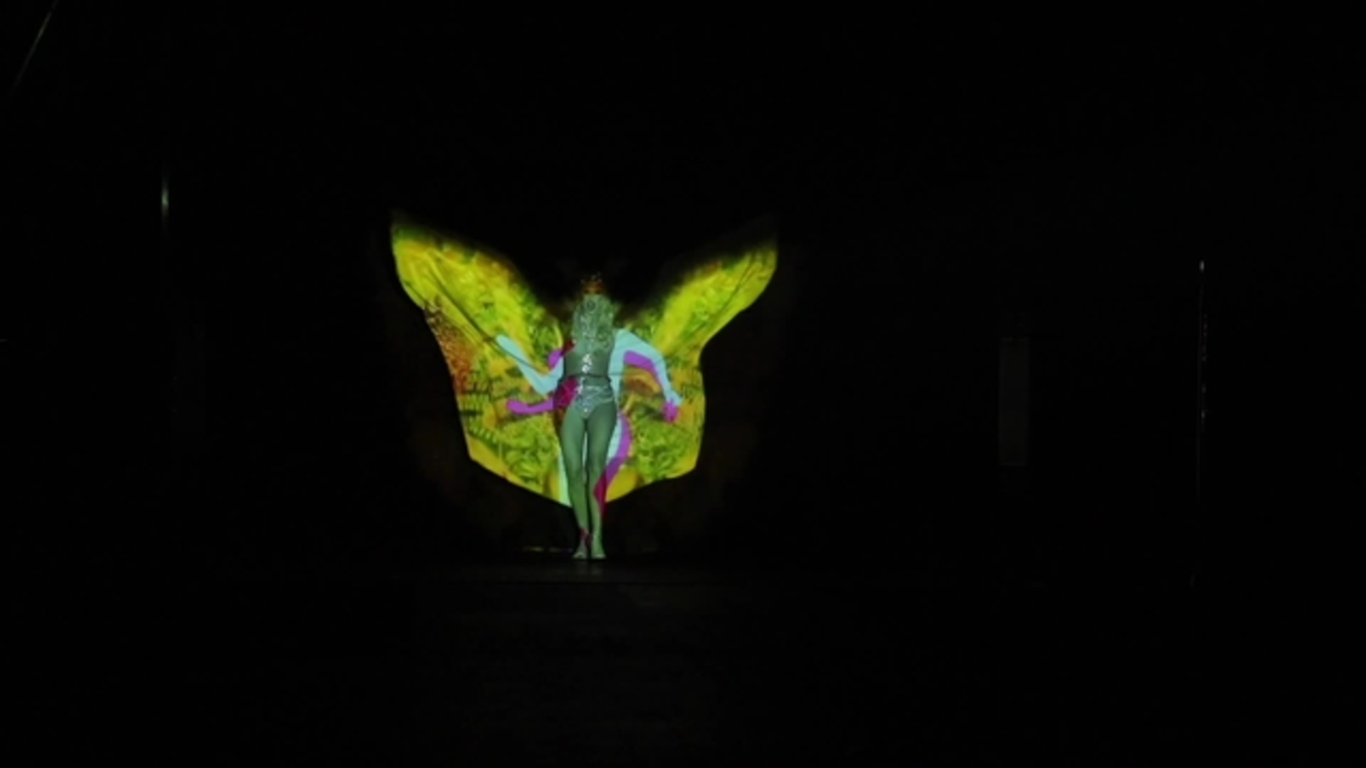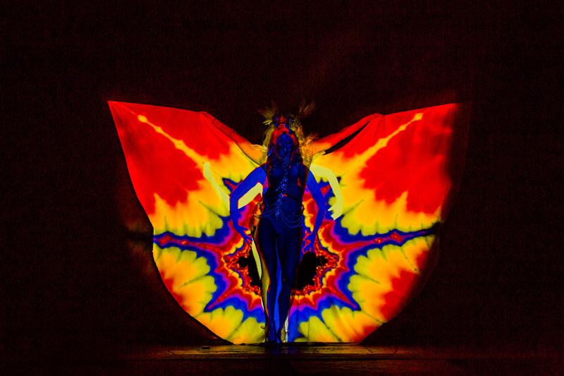Our beautiful winged dancer is sure to keep viewers hypnotised with her psychedelic dance and bespoke projections; three dancers will perform a mesmerising dance routine to amazing projection visuals; two aerialists will fly high in the air creating an amazing spinning spiral whilst a songstress perform a beautiful song; and sassy burlesque neon dancers will perform an innovative and unique routine with UV outfits and props.