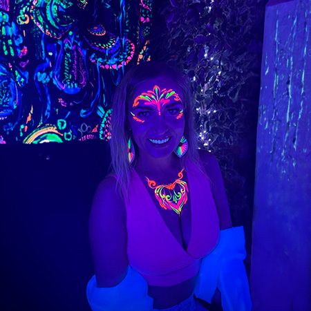 From festivals and concerts to intimate gatherings, our face and body painter provides unforgettable experiences filled with vibrant UV colours