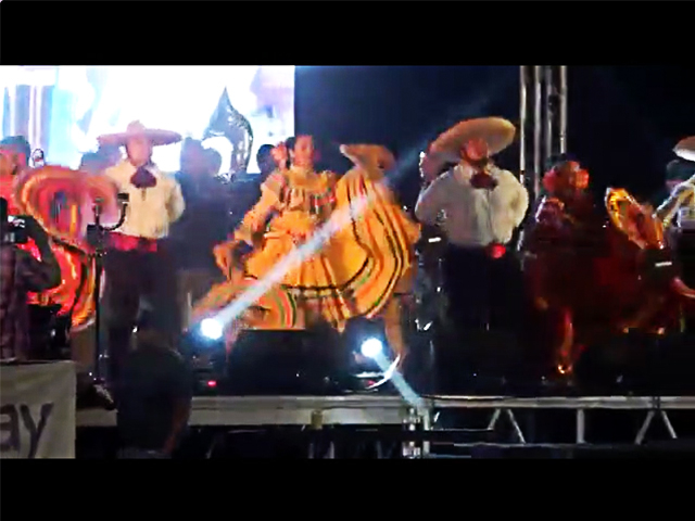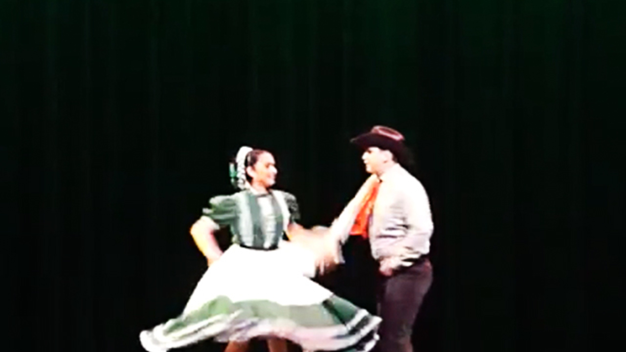 Male and female dancers perform traditional dances from the regions of Jalisco and Sinaloa in traditional Mexican suits and dresses
