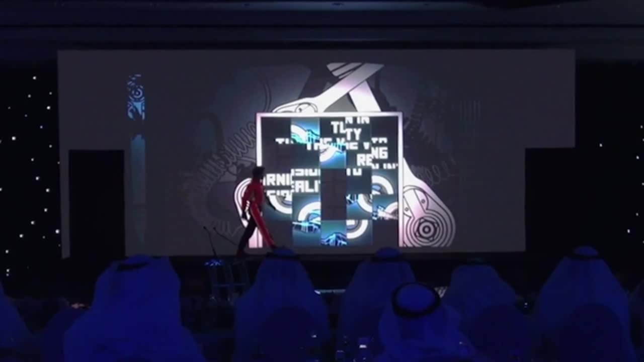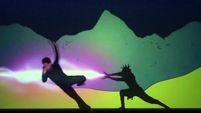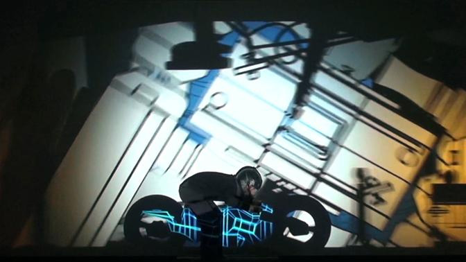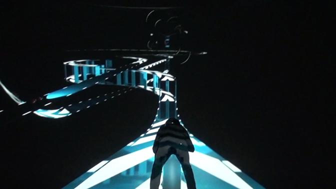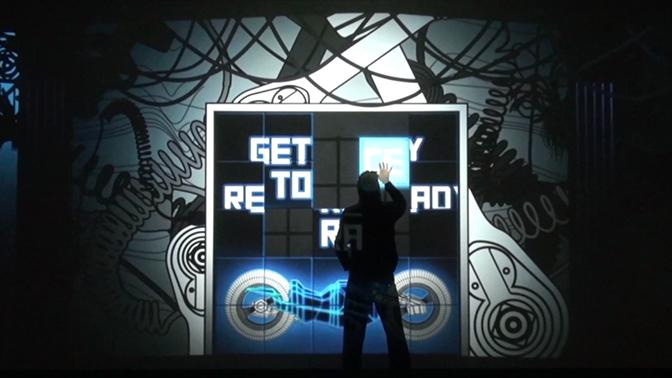 The performer sets foot on stage and presses the Play-button on the screen. From then on, he is trapped in a mystical game-world where he becomes the player and must interact with the environment in order to survive. The only thing he knows: he must find the treasure.