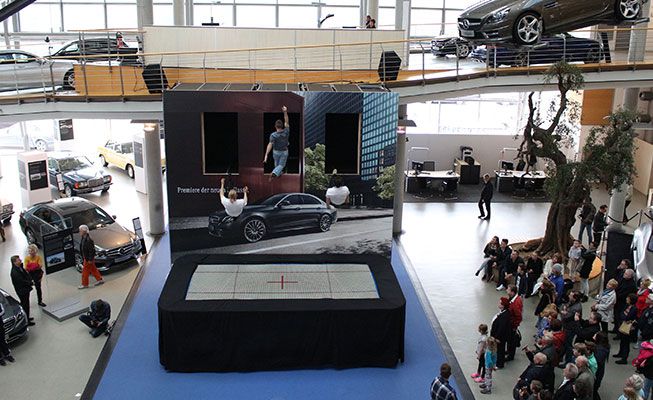 Based in Germany, our video mapping trampoline wall show is available for corporate, street and sporting events, activations and launches worldwide