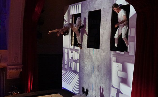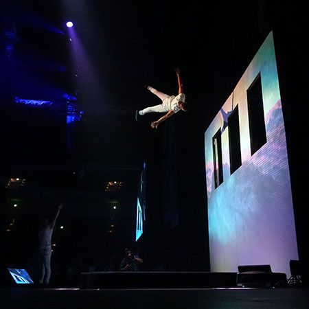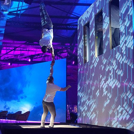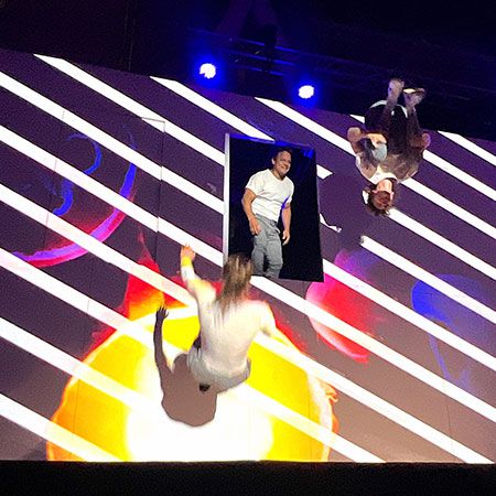 A wow-factor trampoline show with a difference, this thrilling acro show uses video mapping to create an amazing visual experience