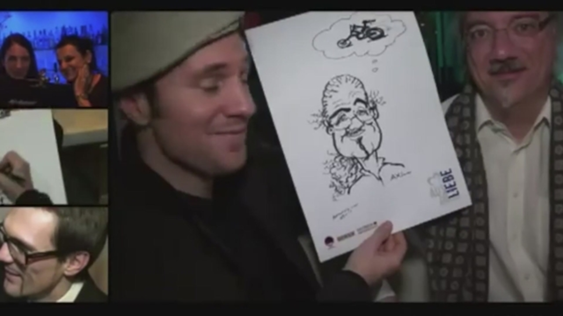 The highly versatile Vienna caricaturist is available for a wide range of event types and can fully tailor his artistic style and visual appearance, from formal to informal or even themed, depending on client needs. The illustrations can be done and presented to your guests on branded sheets of paper that can include any text, logos or branding of choice.
