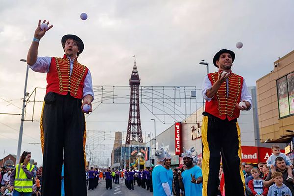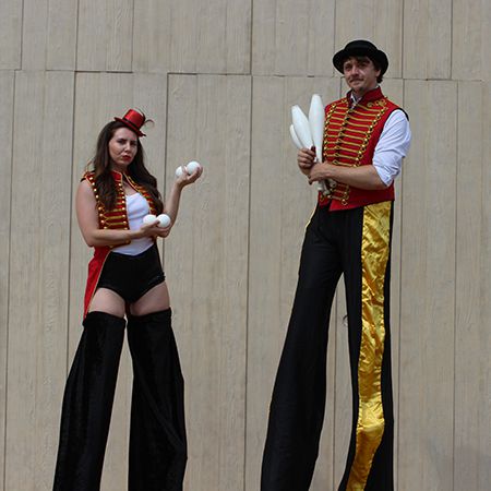 A versatile package featuring juggling, acrobatics, stilt walking, unicycling, and circus workshops with high-energy, unforgettable performances