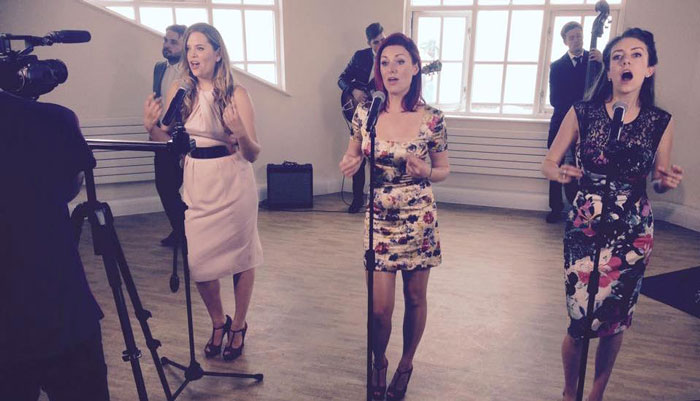 Our vocal trio is very customisable and adjustable to suit your live music needs. Available as a full live band the female harmony trio are accompanied by a drummer, guitarist, trumpeter and double bass player as you will see in the first two videos. Alternatively, as you hear in the third video, the vocal trio can be booked with just a guitarist for a more stripped down live music performance and you can add a trumpet too.