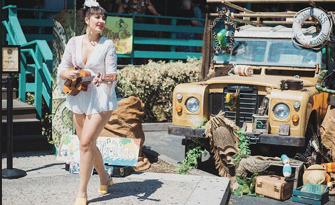 Merging Tiki culture, rockabilly, surf rock and more, our artist embraces the spirit of yesteryear, allowing guests of all ages to enjoy her act