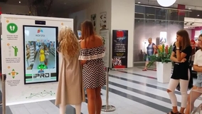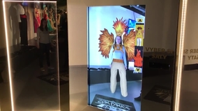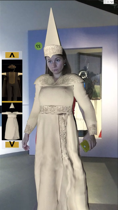This interactive feature allows your guests to virtually try on a wide range of stock and customised outfits and change by swiping their hands