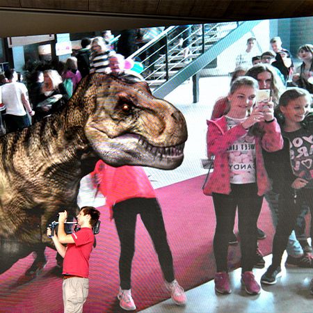 Foster engagement and excitement by allowing users to interact with the T-rex projection. Users can observe its movements and hear its roar