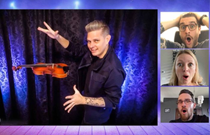 This is a live-streamed and fully interactive experience that will elevate any online event, meeting or conference. Using 3 full HD quality cameras and streaming from a high-quality production studio guests will feel like they are in the room with Chris Funk! To get the most out of this experience we recommend that it is viewed using Streamyard and Youtube Live Unlisted, however, video conferencing platforms will be considered too. The show begins with an intro video showing our performer's amazing credentials before jumping straight into the hilarious and funny interactive magic! We don't want to give too much away, but it’s not a show full of card tricks. Guests can expect music and magic combined in the most unique ways, violin magic, mentalism and Chris can even teach guests how to perform a trick at home using objects from around the home!