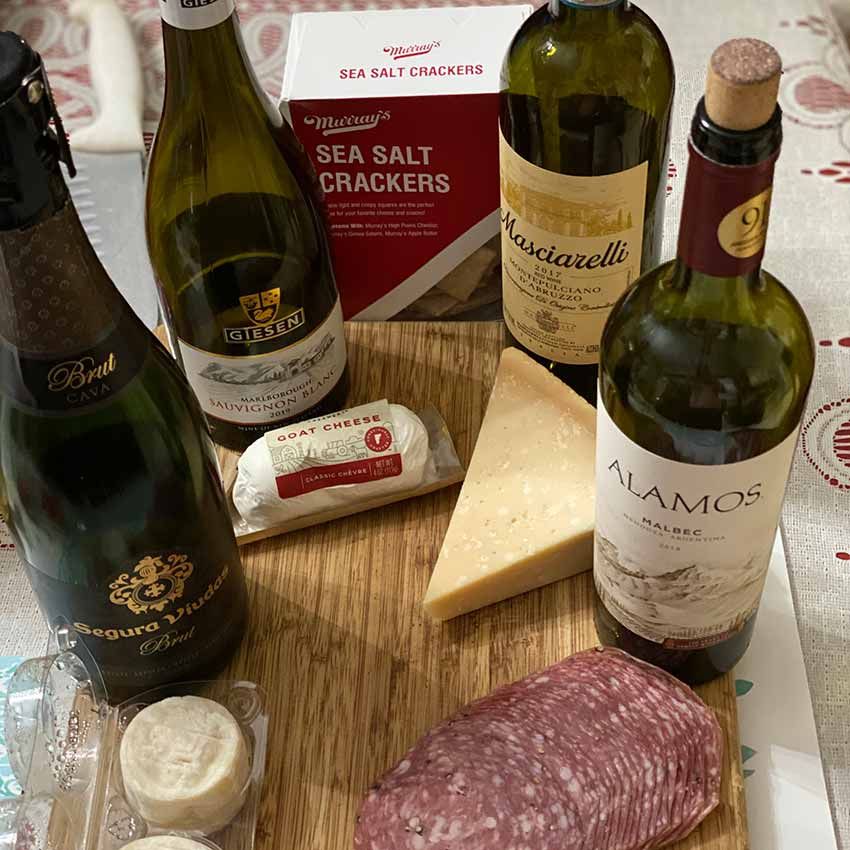 Goat cheese, Bloom Rind Cream Cheese, Alpine cheese, Soppressata, crackers