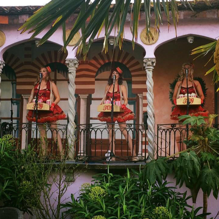 Bring the cheeky glamour of 1950s Tinseltown to any event with the Vocal Usherette Trio and give your guests an unforgettable mix of roaming entertainment, close-harmony singing and gift distribution. Whether you want your guests to be given popcorn and a song or a branded gift and a show, these singing usherettes can do it all with a wink and a smile.