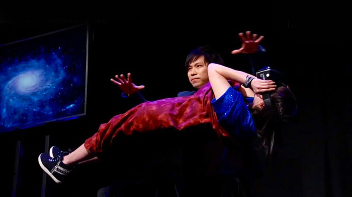 For this amazing VR illusion show, he uses the latest in technology to impress and immerse the audience in the world of virtual reality. Equipped with a virtual reality headset, our technological illusionist uses extremely clever video mapping techniques and clever illusions to create a show that is unique in the field of live stage magic. The VR illusion show blurs the lines between reality and graphics making the possibilities of this virtual reality entertainment utterly endless.