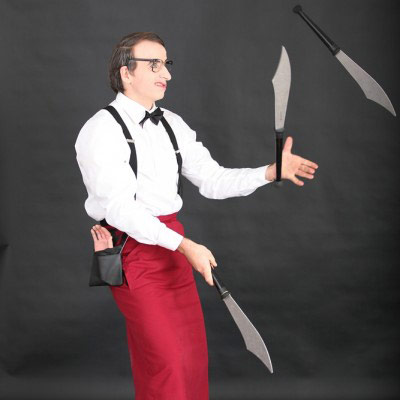 The comedy waiters can cover many artistic genres simultaneously and react flexibly according to the circumstances at the venue and depending on the situation. Small show performances such as juggling, handstands and fire eating are possible as well as working in a confined space with close up magic and comedy at the tables.