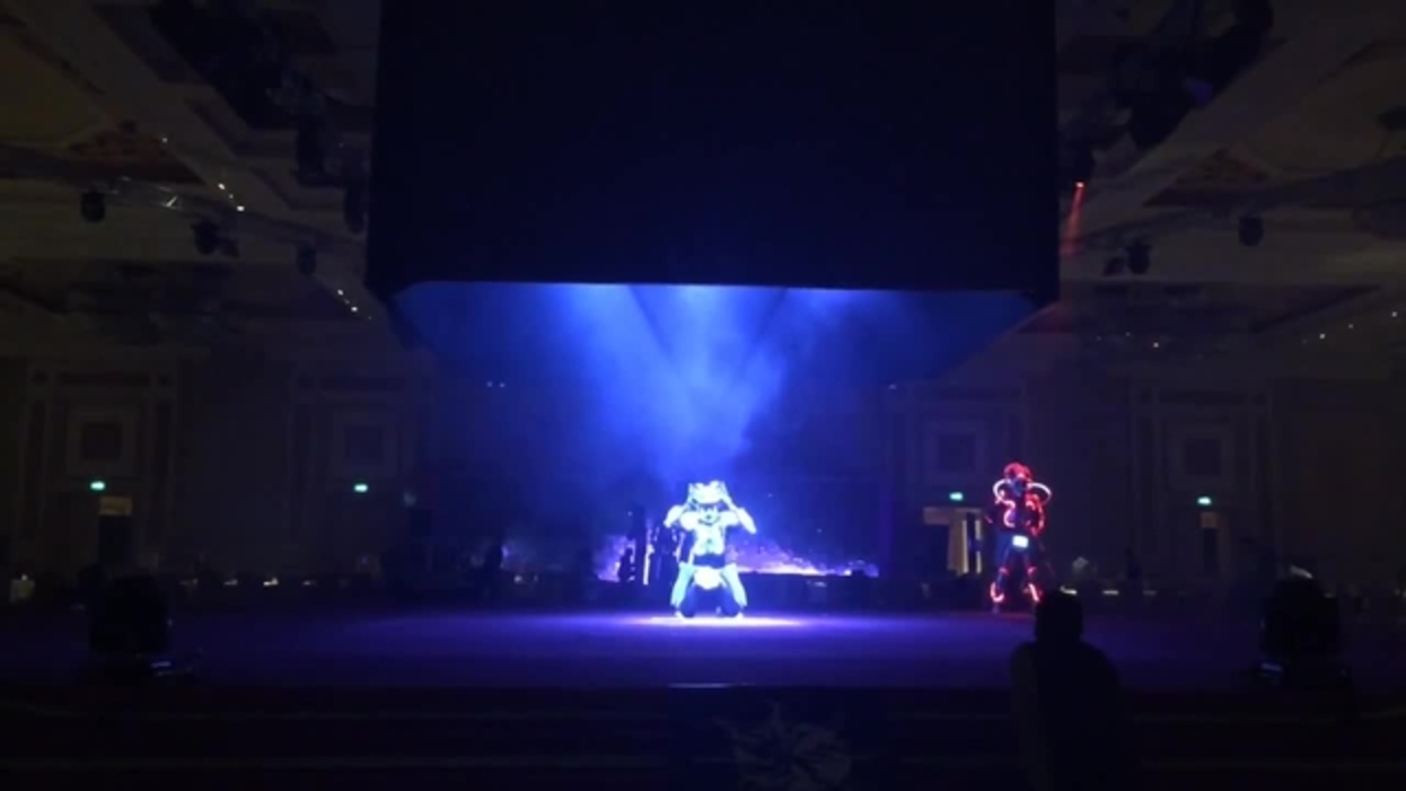 Cutting an impressive figure at your event, these amazing robot brothers are sure to grab the attention of your guests as they wander through the crowds equipped with incredible light displays and with striking blue futuristic costumes.