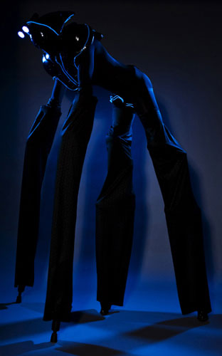 High Beam boasts a head light and strobe lights. Black Beam may blend into the shadows with his jet black outfit but his two powerful UV lights will make white and ultra violet colours come to life, making this act the perfect choice for club nights, private parties and space themed events.