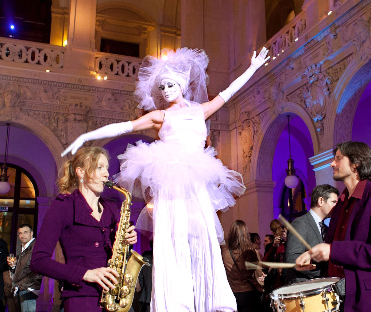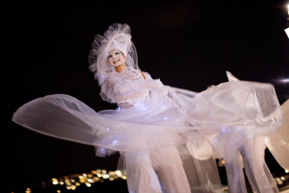 Graceful and visually gorgeous draped in their translucent veils, these Stilt Fairies are the perfect choice to treat and greet guests at a private party, corporate function, wedding, themed event or strolling in the streets during street festivals.