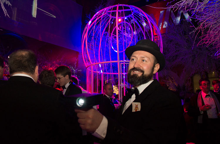 Described as ‘visual puppetry’, Scarlett Entertainment UK’s amazing act employs video game technology to project vivid animations of anything from animals and bodies to logos and patterns. Encouraging witnesses to engage with their environment and look at conventional spaces in a new light, the visuals aim to surprise and delight onlookers.