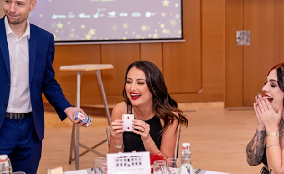 " [He] is an exceptional magician who left our guests in awe. His magic amazed everyone including Coronation Street actress Sally Dynevor. Simply the best close up magician I have ever seen. "