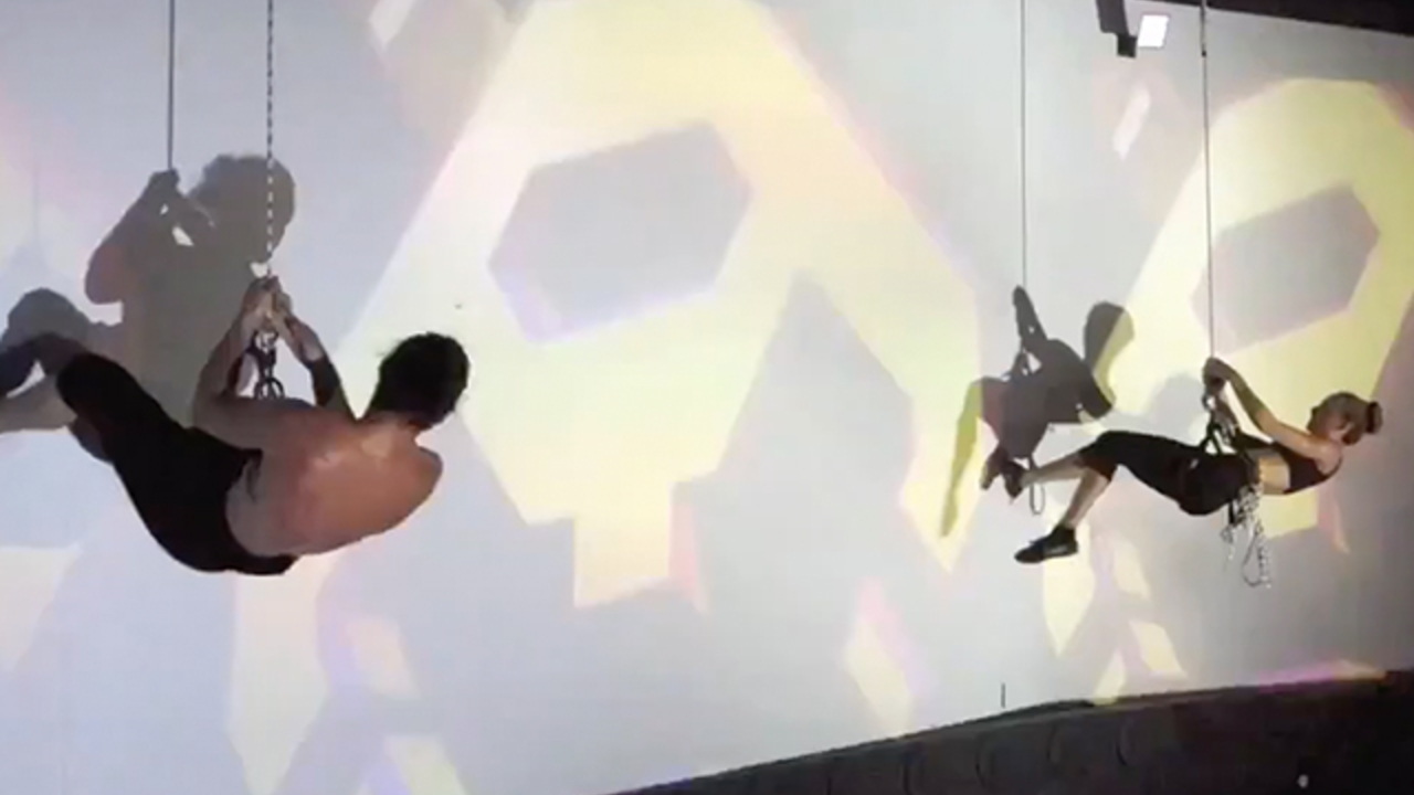 An extraordinary display of flawless technique and boundless creativity as two aerial dancers execute a unique wall walking routine