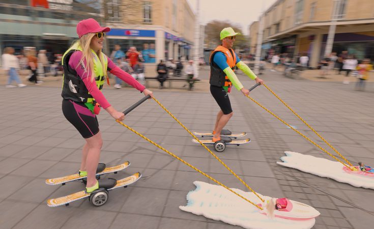 Dressed in vibrant costumes and accompanied by retro beach tunes, they bring a fun, summery vibe that appeals to all ages