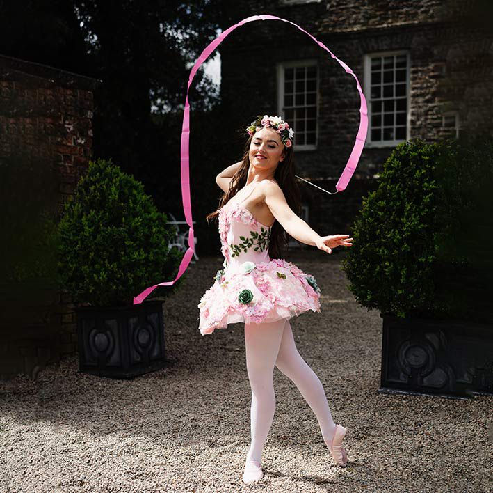 After accompanying the bridge and groom briefly and enhancing the beauty of the first dance, the balleret dancers move off to dance among your guests, distributing roses and elevating the romance in the room to new heights. The roaming is offered in three 15-minute slots and can be tailored around the plans you have for seating, dinner, speeches and your first dance. After mixing and mingling with guests, the wedding dancers are also able to create tableaus for guests and the wedding couple to pose with.
