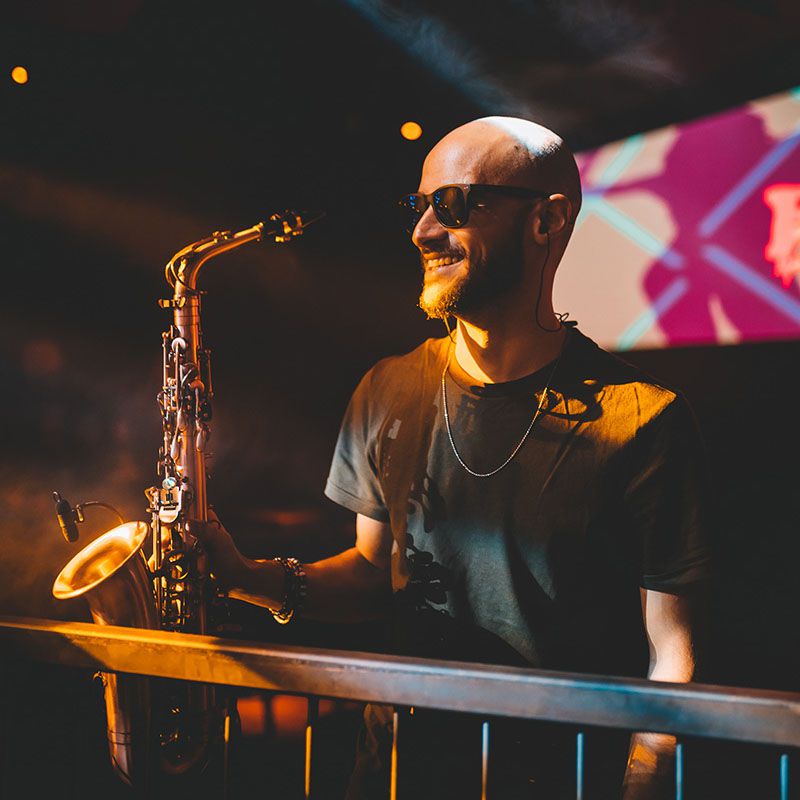 Offering a dynamic fusion of Ibiza house music with live saxophone melodies, our sax player brings energy and creates an electrifying atmosphere