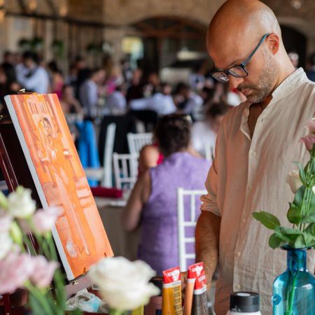 Painting live, he creates intrigue and is fascinating to watch - guests will enjoy following the process as much as seeing the finished product
