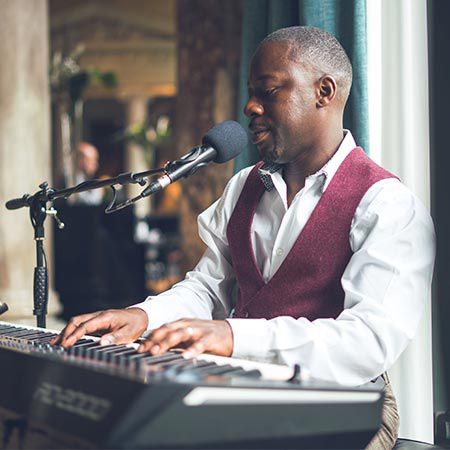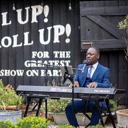 " We had booked [this wedding pianist] for the drinks reception of our wedding on 21.10.2022. He played a full 2 hour set with no interruption and completely took on board what we had discussed in our initial meeting beforehand. He is wonderfully talented musician, with a fantastic singing voice. So many of our guests had commented to say how good he was and how much they enjoyed his performance. I only wish that myself and my now husband were able to see more of him on the actual day! Would absolutely recommend. He drove a long way for our wedding and we were incredibly grateful. Thanks again! "