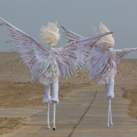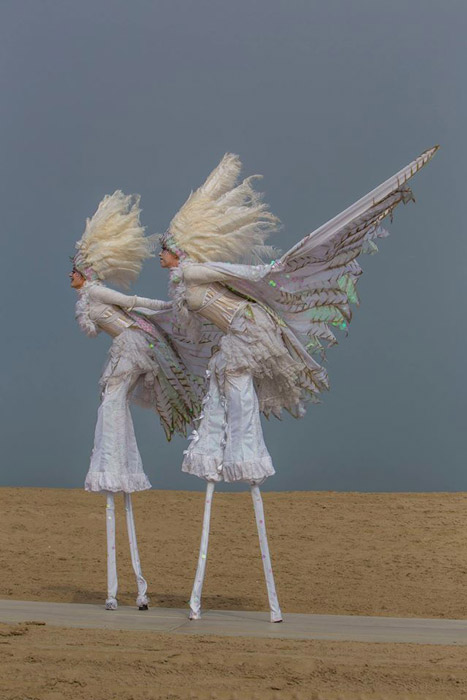 Producing a striking silhouette in sparkling winter landscapes and shining with the sun on hot summer's days, Scarlett Entertainment Holland's beautiful White Doves Walkabout Act promises to bring peace and tranquility to your event. Dressed in custom designed snowy costumes, the dove inspired roving characters create incredible visual impact.