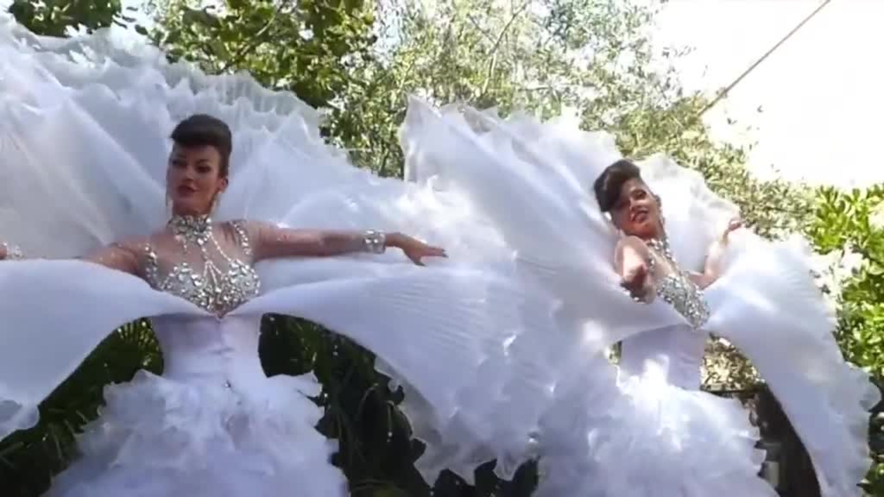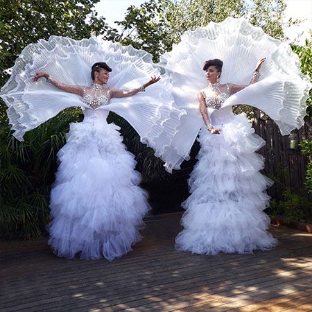Our female white stilt walkers are sure to make an impression at private parties, white themed events, corporate celebrations and festivals