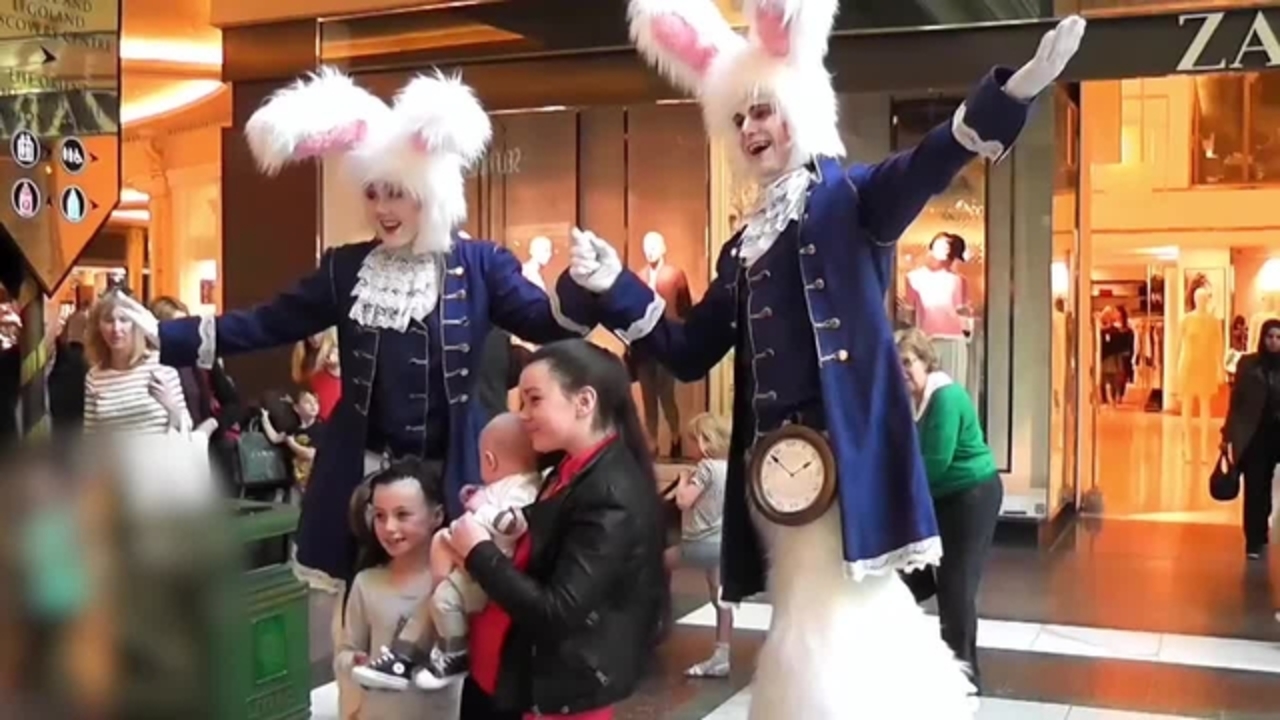 Lively and vibrant walkabout entertainment is what you'll receive when you hire our wonderful white rabbit stilt walkers duo. Using traditional stilt entertainment, our stilt entertainers are larger than life as they bring their costume characters to life, instantly amazing the crowd. Providing very detailed costumes that feature dapper coats and waistcoats, our interactive acts are the perfect walkabout characters for any Easter themed event or an event centred around Alice In Wonderland. Interacting with guests throughout their set, our rabbit stilt walkers ensure guests are always having a great time and smiling throughout the duration of your gathering.