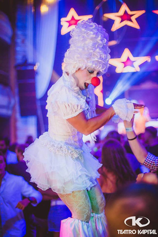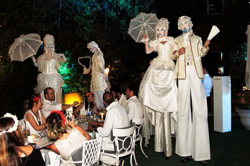 Wearing stunning white 18th century costumes with wonderful accessories such as wigs and umbrellas, our Victorian stilt walkers add a unique visual element to any occasion. Ideal for white and Victorian themed parties, our performers are also an in-demand circus walkabout act for evening and VIP parties.