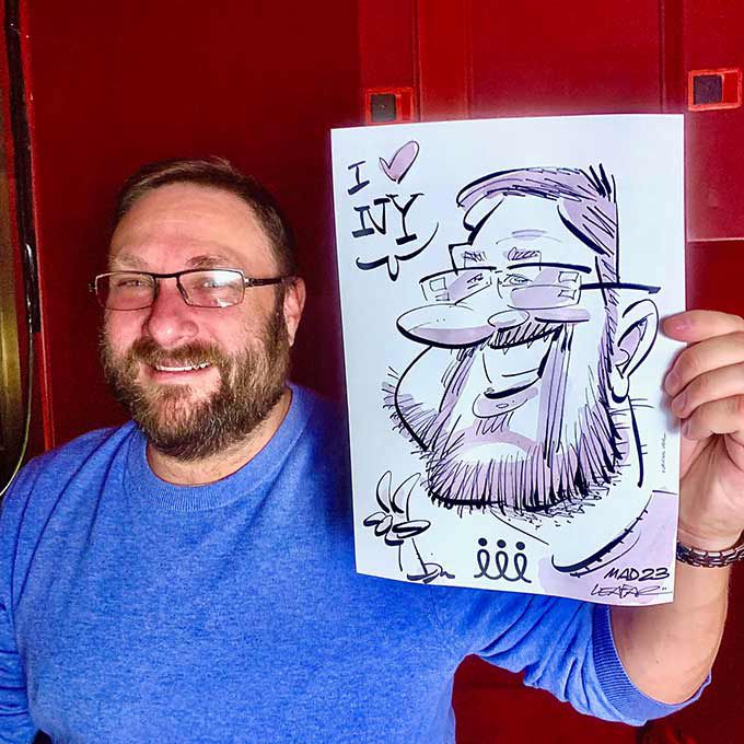 Our caricaturist can customize the artwork with your logo or a special message pre-printed on the paper for additional brand awareness