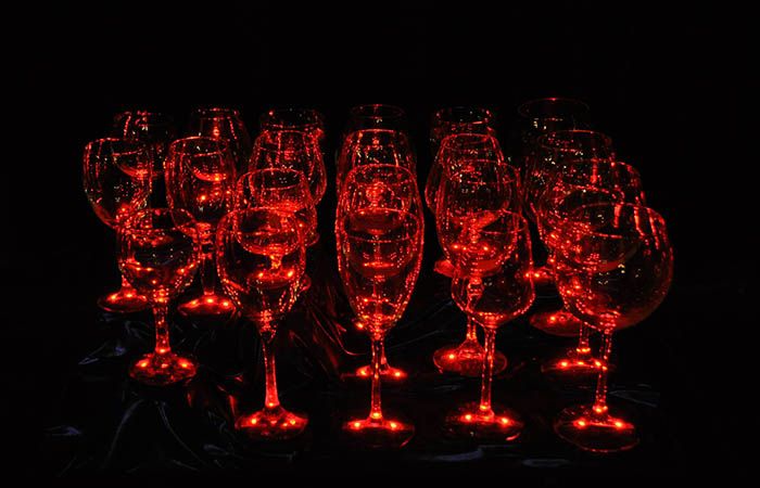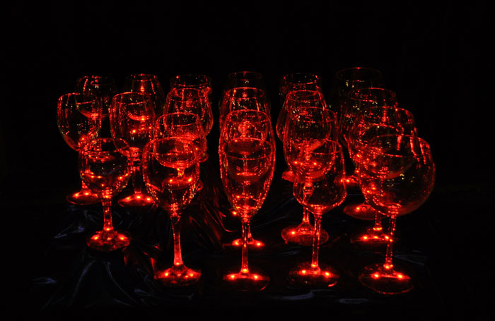 Our glass harp player offers unique entertainment that is suited to many events types from weddings and private parties to gala dinners and corporate functions. The unusual musician is always immaculately presented and his musical spectacle is illuminated by colour-hanging LED lights strategically positioned under the wine glasses.
