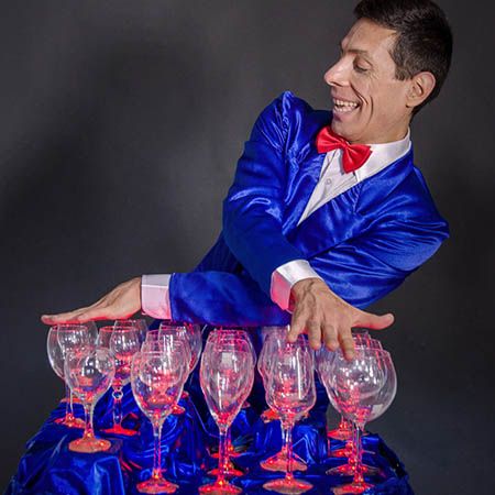 If you are looking for an unusual musician to entertain a crowd, get in touch with our Entertainment Specialists who will assist you in booking our wine glass musician.