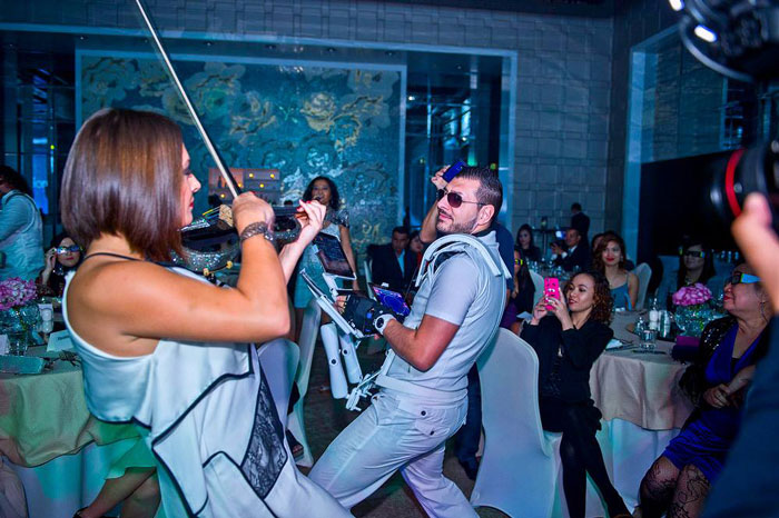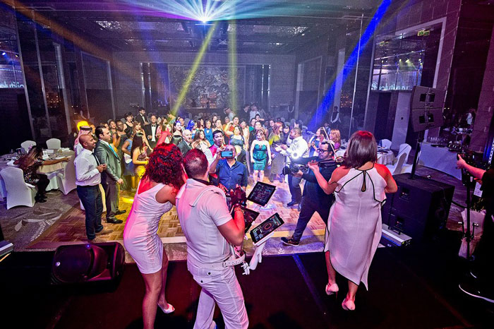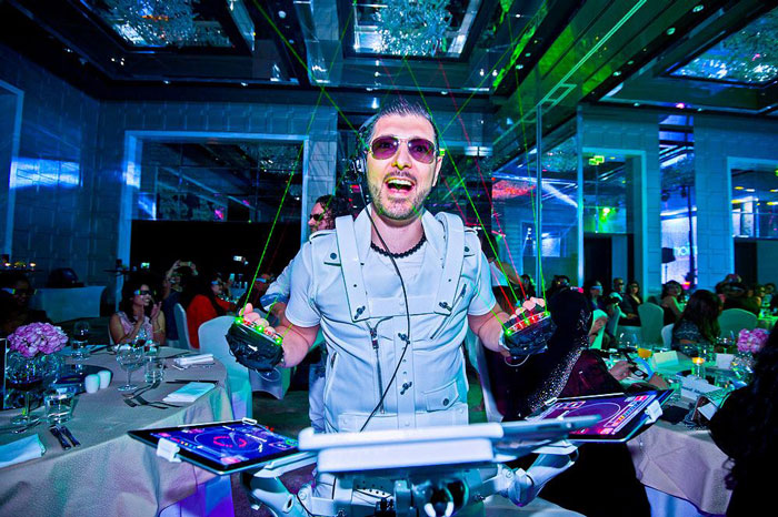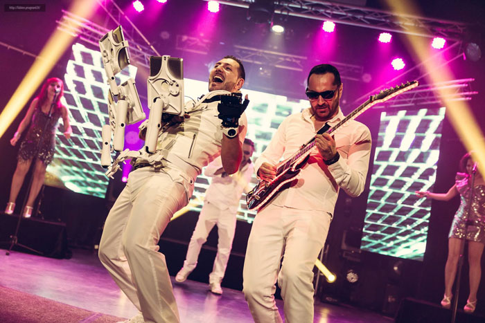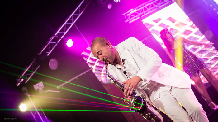 This sensational Wireless Party Band have created a live music concept that will wow your guests and take your event to the next level of entertainment. This unique band is made up of roaming musicians who have completely wireless instruments giving them the freedom of movement around your venue. You can choose from three to eight musicians with a range of female vocals, saxophone, electric guitar, keyboards, electric percussion. The group is led by a completely mobile DJ who is the heart of the performance. He has LEDs and laser gloves for a dramatic experience.
