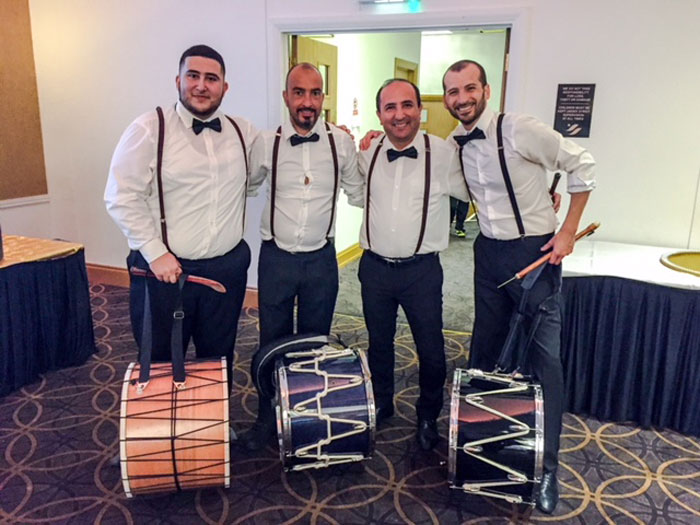 Our London-based Zaffa Performers provide this excellent type of entertainment for weddings, and other cultural celebrations, all over the UK. They have many percussionists available as well as being accompanied by one of there very best Zurna players in the whole country. They tailor their zaffa services to meet the demands of the clients. They have customisable line-ups, performance lengths, costume and much more than can be discussed upon booking.