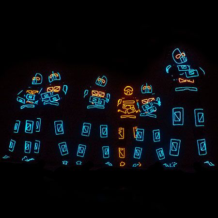 Light dance comprises dancers wearing innovative costumes decorated with colour changing LED lights that can be programmed to fit perfectly with a choreographed routine. As the dancers move, the lights create mesmerising visuals including incredible patterns and shapes.
